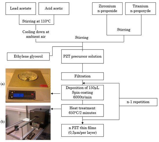 - Seveno, R.; Limousin, P.; Averty, D.; Chartier, J.-L.; Le Bihan, R.; Gundel, H. Preparation of multi-coating PZT thick films by sol-gel method onto stainless steel substrates. J. Eur. Ceram. Soc. 2000, 20, 2025–2028. [Google Scholar] [CrossRef]