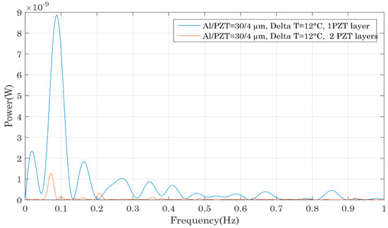Subsequently, the impact of both the PZT and aluminium films thicknesses on the output power was studied. In both cases, the investigation involved one and two PZT layers per bimetal. Then, the devices with one and two layers were compared and the most powerful configuration was pointed out.