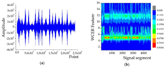 The feature vector should be extracted after a specified length of the signal sequence is acquired. Assuming the feature of the target signal sequence is extracted every K points, the target signal that is acquired is divided into N segments. The process of feature extraction based on WCER is shown in Figure 2.