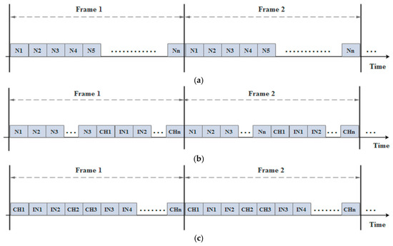 The Time- Division Multiple Access (TDMA) schedule of (a) N; (b) CH; and (c) IN.
