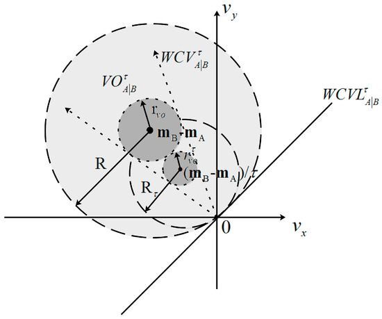 In other words, and contain the most velocities close to UAV and ’s current velocities and . The difference between the velocities and and is equal for and . The establishment of and is shown geometrically in Figure 3.