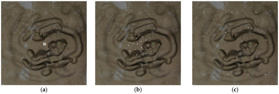 Three typical moments of multi-UAVs sensing coverage: (a) Initial coverage (); (b) Scatter moment ( s); (c) Steady-state coverage ( s).