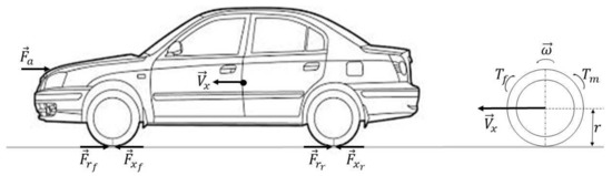 Considering the above assumptions, the longitudinal vehicle dynamics can be expressed by the following equations (see Figure 2):