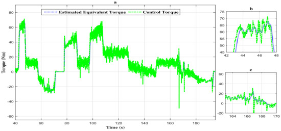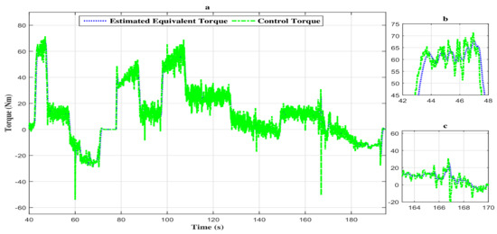 (a) Comparison of the vehicle estimated torque with the two observers. (b) Zoom in at ss]. (c) Zoom in at ss]