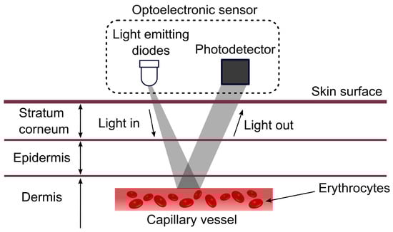 PPG is based on the properties of light scattering caused by glucose in blood. The increase in glucose decreases the misalignment of the light beam penetrating the tissue, because the refractive index is reduced by its presence. As a result, a smaller amount of light is absorbed, and the light intensity which crosses the tissue is greater [69]. The PPG technique is based on Beer–Lambert’s law, which shows that light intensity decreases exponentially when traveling in an absorbent medium, and absorption is wavelength dependent [70].