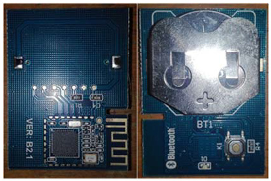 Briefly speaking, beacon is a signal emission point. IBeacons can broadcast Bluetooth signals carrying their information continuously, and the mobile phone app can detect the signal and transform the signal into RSSI values. The hardware of iBeacon is shown in Figure 4.