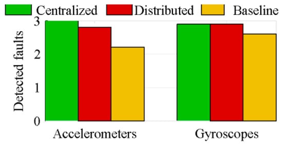 The FDI algorithm, identical for the three architectures, is based on a statistical analysis of the residual. There are systematic ways to deal with faulty sensors [,], but as this work realizes relative comparisons of data fusion architectures, a simple FDI method is used.