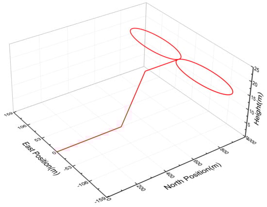The simulation scenario is described in Table 1. For the first 30 s, the vehicle accelerates from 0 m/s to 30 m/s at the constant acceleration of 1 , and then head up and decelerates from 30 m/s to 24 m/s at the constant acceleration of −1 . Finally, the vehicle keeps this constant velocity and conducts the 8-driving. The three dimensional trajectory of the vehicle is shown in Figure 1.