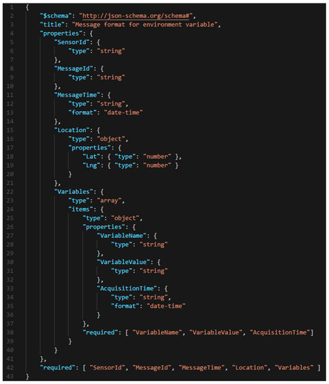 JSON schema for environmental variable message.