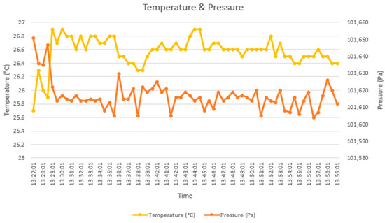 Evolution of temperature and pressure monitored by the sensing module prototype in the admission office.