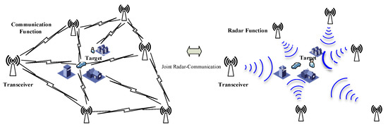 In order to simplify the discussion, we assume perfect synchronization between different adaptive MIMO radar-communication transceivers. Figure 2 shows the joint communication-radar operation.