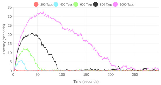 - It must be also noted that, during the tests, the behavior of the tags was emulated in order to evaluate the performance of the proposed architectures. In a real deployment, the results will differ due to the emulated tag behavior and because of the characteristics of the scenario (e.g., signal propagation, obstacles, presence of metal). Note also that, when several hundreds of tags respond at the same time, two main issues would arise: