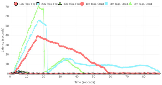 - Despite the observed under-performance of the cloud-based system, it is worth noting that it is possible to reduce the response latency by adjusting different high-availability parameters in VMWare ESXi [57]. Nevertheless, in terms of response latency, it seems that the proximity of the fog gateways is essential and, under regular loads, it would be difficult for the cloud to obtain lower round-trip times than the ones obtained by such devices.