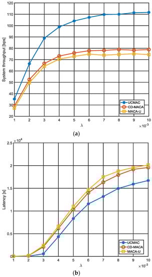 - System throughput: The average number of DATA bits successfully received by the intended destinations per second (measured in bps)