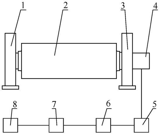 System of entire roller-embedded shapemeter. 1, transmission side bearing seat; 2, shapemeter roll; 3, operating side bearing seat; 4, self-generating signal processing and wireless transmitting device; 5, wireless receiver; 6, decoder; 7, software processing system; 8, memory and peripherals.