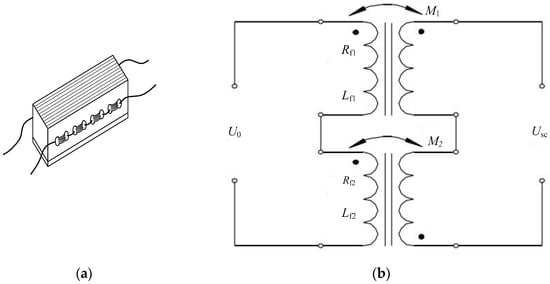 Pressure magnetic sensitive component: (a) structure; (b) equivalent circuit.