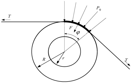 If the influence of the strip temperature on the interference fit is ignored, the sensor is subjected to a certain contact pre-pressure. This pre-pressure (i.e., the initial pre-pressure of the sensor) results from the interference fit between the contact surfaces at the top of the sensor. According to [8], the initial pre-pressure of the sensor is: