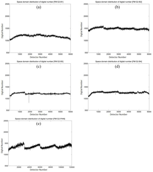 Figure 3b). In addition, the number of sensor arrays in satellite sensors is generally increasing with the advancement of satellite-imaging technology, introducing a higher complexity of detector chips as well as an urgent quest for accurate relative radiometric calibration [