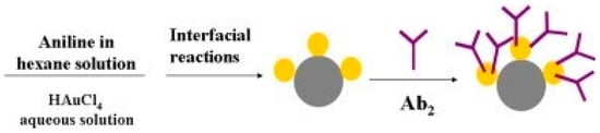 Schematic representation of the preparation of the PANi–Au AMNPs-Ab2. Reproduced with permission from [].