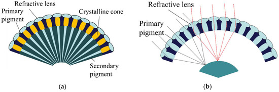 The schematic diagram of (a) the apposition compound eye and (b) the superposition compound eye.