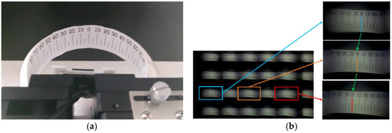 Field-of-view (FOV) of the assembled imaging system was measured using a 3D-printed half-circle structure and a paper-printed goniometer, as shown in Figure 8a. Figure 8 shows that the leftmost microlens captured −50 degrees and the rightmost microlens took +50 degrees. This means that our imaging system has about 100 degrees of FOV, which is higher than the FOV of the single microlens (80 degrees).