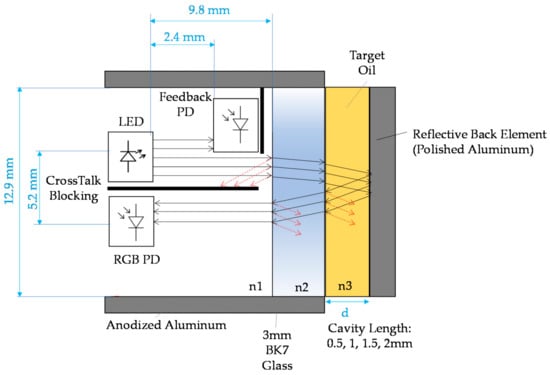 | Cavity Length | (i) Oil Sample (Transmitted Light) | (ii) Back Element (Reflected Light) | (iii) Oil Sample (Transmitted Light) → RGB Detector | ||||||