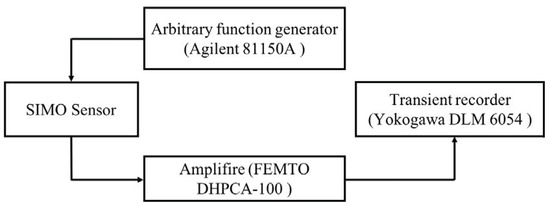 A schematic diagram of the experimental setup of the SIMO IDTs using acoustic waves.