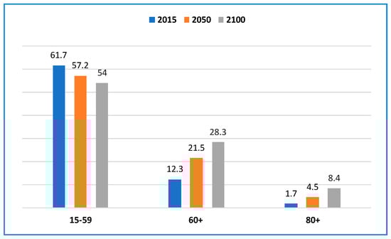 - United Nations. World Population Ageing; United Nations: New York, NY, USA, 2015. [Google Scholar]