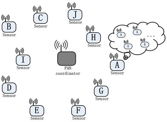 Sensor devices can operate in either of the two modes according to the IEEE 802.15.4 standard, (i.e., non-beacon-enabled mode and beacon-enabled mode) []. This paper focuses on the latter. In the beacon-enabled mode, time is divided into discrete time slots called the backoff period (BP) with a fixed duration of 320 μs. The PAN coordinator periodically sends beacon frames for network synchronization. The time interval between two consecutive beacon frames is called the beacon interval (BI), which is decided by the value of the beacon order (BO), where 0 ≤ BO ≤ 14. The period of the BI is composed of an active period and an inactive period. The active period is structured as a superframe for data packet transmission. The superframe duration (SD) is determined by the value of the superframe order (SO), where 0 ≤ SO ≤ BO ≤ 14. Within one superframe, the first time slot is allocated for the beacon frame and the rest of the time slots are divided into contention access period (CAP) and contention free period (CFP).