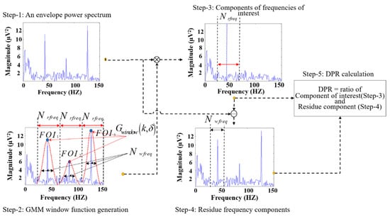 Evaluation of the IMFs by computing the degree-of-presence ratio (DPR) over the frequency of the interest and its harmonics. GMM, Gaussian mixture model; FOI, frequency of interest.