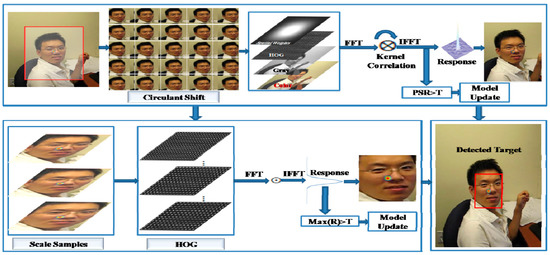 - Henriques, J.F.; Caseiro, R.; Martins, P.; Batista, J. Exploiting the Circulant Structure of Tracking-by-Detection with Kernels. In Proceedings of the European Conference on Computer Vision (ECCV), Florence, Italy, 7–13 October 2012; pp. 702–715. [Google Scholar]