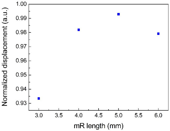 Figure 6. Calculated normalized displacement as a function of mR length.