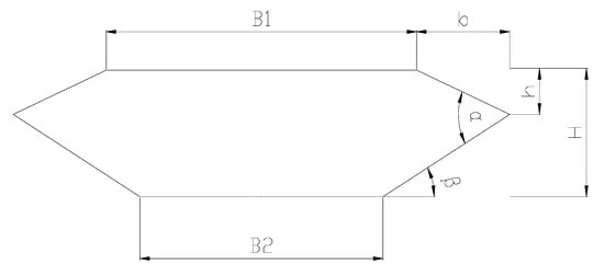For existing long-span cable-supported bridges with closed-box girders and a main span over 1000 m all over the world, most of the values of α range from 50° to 60° and the values of β range from 10° to 20°, according to the References [13,16]. Based on these facts, two α values of 50° and 60° as the upper and lower boundaries, and six β values from 10° to 20° with intervals of 2° were selected in the current research. Recently, many scholars have studied the effects of wind fairings and lower inclined webs on the aerodynamic characteristics of box girders. Larsen found that a wind fairing with smaller angle has a higher flutter critical velocity though wind tunnel tests [6]. The flap and fairing are often used to improve the aerodynamic stability of the bridge section [13]. Wang reached the conclusion that the flutter critical wind speed increases significantly and the VIV phenomenon disappears when the inclined angle of the lower inclined web turns below 16° for the 4th Nanjing Yangtze River Bridge [17,18]. Larsen and Wall [1] utilized three different bottom plate inclinations and also recommended an angle of around 15° to suppress vortex shedding vibrations. Ito studied the coherence characteristics of fluctuating lift forces for a rectangular shape with various fairing decks and suggested that the upstream fairing tends to weaken the flow separation from the leading edge. Our previous study [19] compared the flutter performance of closed-box bridge decks with five types of geometrical configurations through experimental investigation and found that a sharper angle of wind fairing enhances the flutter performance. We also explored the flutter mechanism by combining of the two-dimensional three-degrees-of-freedom (2D-3DOF) analysis scheme and particle image velocimetry (PIV) tests [20], in which the characteristics of the typical vortices around central-slotted sections which are related to the interactive force between the deck and surrounding airflow vary significantly with the relative slot width. Haque et al. [21] investigated the effect of wind fairing on the aerodynamic stability of the bridge section by using computational fluid dynamics (CFD), and he found that the bottom plate slopes of 25°–15° for top plate slopes of 40° or less have lower aerodynamic responses. He et al. [16] investigated the influences of three typical geometric parameters (i.e., width to height ratio (B1/H), wind fairing angle (α), and wind nose geometry (H/h)) on the aerodynamic forces of a streamlined flat box girder. It showed that the girder with H/h = 2–3 and a relatively larger B1/H and α produces a better aerodynamic performance of the girder. In summary, the previous studies show that a closed-box girder presents excellent aerodynamic performance when the angle of wind fairing becomes sharper and the inclined angle of the lower web is below 16°; however, the relationship between the angle of wind fairing and the inclined angle of the lower web as well as their influence in the aerodynamic performance of bridges are not yet fully understood.