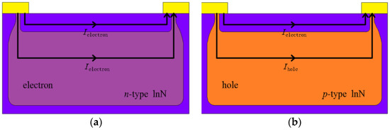 Schematic diagrams of conduction mechanism for n-type (a) and p-type (b) InN sensors.