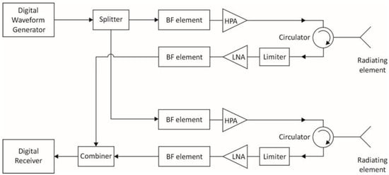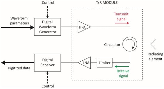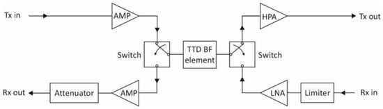 - Sturdivant, R.; Harris, M. Transmit/receive modules. In Transmit Receive Modules for Radar and Communication Systems; Artech House: Norwood, MA, USA, 2016; Chapter 2, Section 2.5.7; pp. 44–45. [Google Scholar]