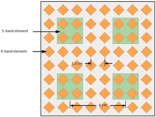 - HPA: The Table 2 lists some key specifications for several commercially available MMIC HPAs with different bandwidths and operating frequencies [37,38]. The first HPA listed uses GaAs technology, while all of the others in the table are GaN devices. As mentioned earlier, GaAs HPAs cannot produce power outputs as high as similar-sized GaN-based HPAs, but this one is included because a GaN device with a similar ultrawide bandwidth could not be found. The quantity PAE indicated in the table is power-added efficiency, calculated as , where is the maximum HPA RF power output, is the maximum RF power input, and is the DC supply power required by the HPA. PAE represents the percentage of the DC supply power that is converted in the HPA to useful RF output power, with the remainder being dissipated as heat. All else being equal, a low value of PAE for the HPAs implies that a larger DC power supply must be provided for the AESA, and that the thermal cooling design for the array becomes more challenging. The table indicates that both HPA output power and PAE generally decrease as bandwidth and operating frequency increase. While the first HPA in the table covers the full frequency range of interest, its output power of 0.25 W and PAE of 10% are by far the lowest of the HPAs listed. As mentioned in Section 3.2.1, an output power of at least 10 W per element is generally required to accommodate high EIRP RF functions like naval radar, so this HPA would be unsuitable. The other HPAs listed may be appropriate MFRF system candidates, although they cover smaller bandwidths. The TGA2813 and TGM2635-CP (Qorvo, Greensboro, NC, USA) are designed specifically for S-band and X-band radars. Their favourable output power and PAE specifications highlight the benefits of potentially using narrowband HPAs in conjunction with a multiband AESA such as the dual-band array described above.