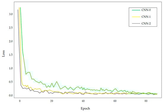 According to the experimental results shown in Figure 16, with the epoch, both of three models gradually converged, however, the convergence speed of the CNN-0 network without normalization is significantly slower than the CNN-1 and CNN-2 networks which were processed by normalization or batch normalization. Compared with CNN-1 network, although the two curves are close, the convergence speed of CNN-2 network still has obvious advantages. And as the iterative process proceeded, the loss value of the network tended to be stable. The experimental results verified that the normalization layer can effectively accelerate the convergence of the network.