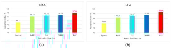 Comparison of activation functions: (a) FRGC face database; (b) LFW face database.