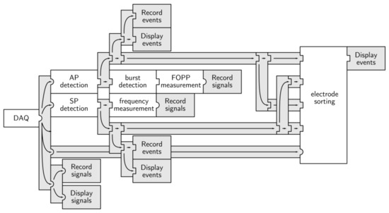- Pirog, A.; Bornat, Y.; Renaud, S.; Perrier, R.; Jaffredo, M.; Raoux, M.; Lang, J. A versatile electrode sorting module for MEAs: Implementation in a FPGA-based real-time system. In Proceedings of the IEEE Biomedical Circuits and Systems Conference (BioCAS 2017 IEEE), Torino, Italy, 19–21 October 2017; pp. 368–371. [Google Scholar]
