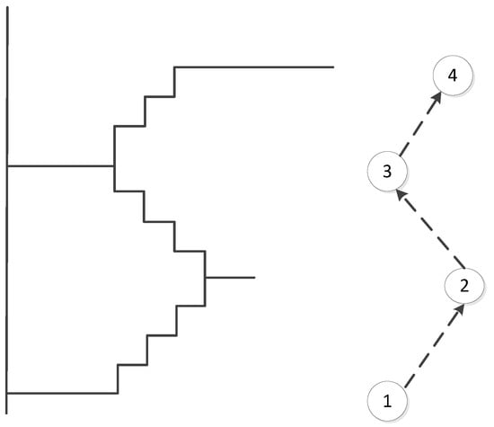 An example of using OSM relations to model stairs. The stair relation here consists of four members (i.e., Step 1, Step 2, Step 3, Step 4).