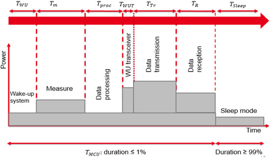 Figure 2 illustrates a possible working sequence of the sensor node and allows defining different operating modes, which are managed by the processing unit.