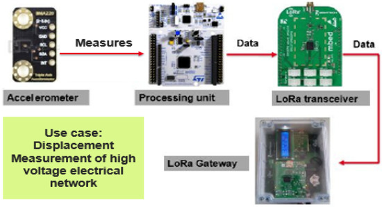 Once the essential data processing is done, the information can be communicated to the access point [22]. Several standards have been proposed in the recent years for the IoT applications [11,12]. Among these, Low-Power Long-Range radio (LoRa and LoRaWAN) are gaining a lot of interest because of the high receiver sensitivity (down to −137 dBm). These technologies can reach long transmission distance (up to 20 km). In our design model, LoRa/LoRaWAN are implemented using the Semtech’s SX1272 transceiver.