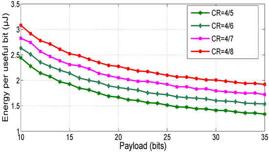We introduce the energy per useful bit in this paper, which is an important metric to evaluate the power consumption of the sensor node. The expression is given in Equation (19):