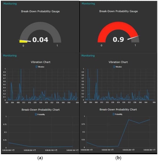 If the probability of the facility’s fault derived from the fault detection model exceeds the threshold set by the user, the LED bulb gives warning lights. The result of the configured fault monitor is shown in Figure 4.