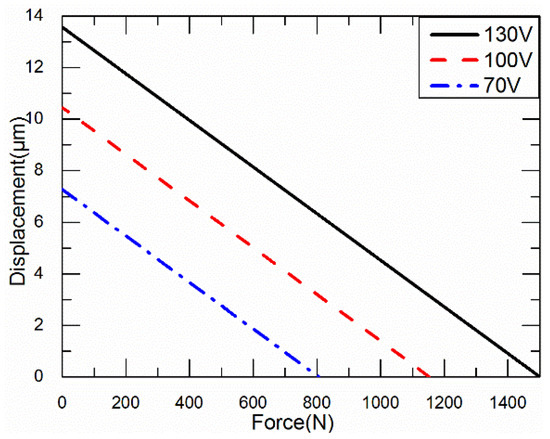 The relationship between the force and displacement under different working voltages is shown in Figure 4.