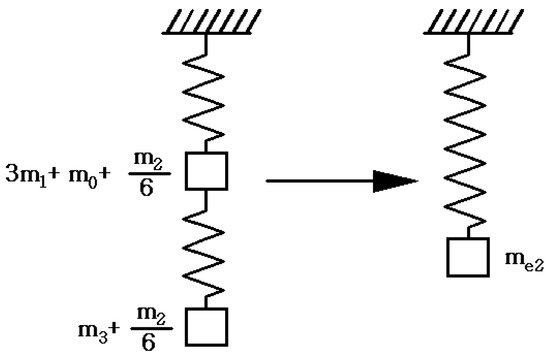 The equivalent mass of the vertical spring-mass-damper system is shown in the Equation (9).