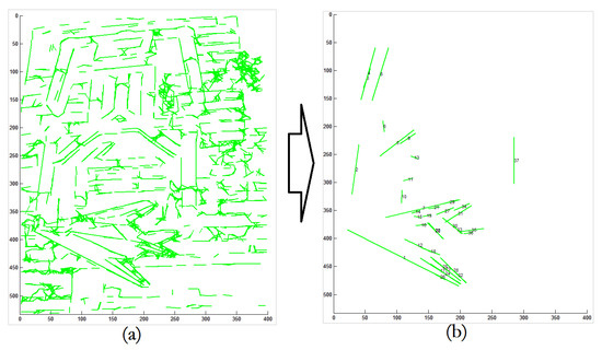 Example of line extraction by constraint propagation. For the image in (a), it is efficient to detect the the object satisfying the shape-based geometric constraints, as shown in (b).