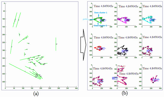 An example for object estimation by verification. For lines in (a), the location, scale, and orientation of the object could be verified through searching path. (b) The top nine paths satisfying the geometric constraints of were found. Each path represents an estimation of the object. It is obvious that our method not only efficiently detected the object but also estimated the object’s location, scale, and orientation.