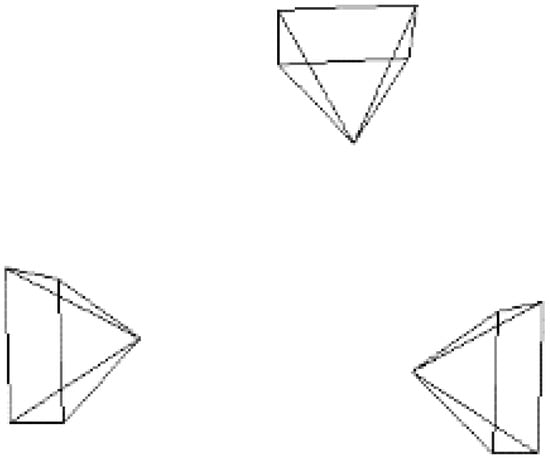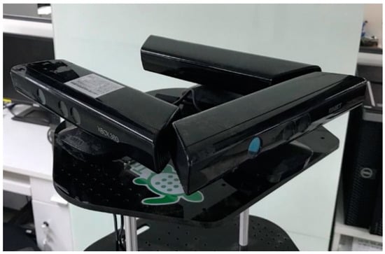 To achieve a wide field of view system by multiple RGB-D cameras, we need to do extrinsic calibration first between different RGB-D cameras. Villena-Martínez et al. [] made a comparative study of different calibration methods. They focus on the intrinsic and extrinsic parameters between RGB sensor and depth senor. In our work, we suppose the above parameters have been calibrated, and focus on the extrinsic calibration between different RGB-D cameras. Most of the extrinsic calibration methods make use of the overlapping fields of view of the cameras. However, in robotic and unmanned fields, cameras are usually mounted around the rig in a ring and point outwards with little overlapping fields of view. It is not easy to calibrate such a system using existing calibration toolboxes by chessboard or circular-dot patterns [] due to the minimal overlapping fields of view. Accordingly, Li et al. [] designed a feature descriptor-based calibration pattern which is easy of detection even when the cameras observe partially of the board. Su et al. [] proposed a novel algorithm to calibrate the RGB-D camera networks by using a spherical calibration object. Recently, as inertial sensors appear on robots, hand–eye calibration usually be used to calibrate the extrinsic parameters of the cameras. Tsai et al. [] proposed a classical hand–eye calibration approach which requires the sensors rotate around at least two different axes. In [,,], an improved hand–eye calibration algorithm was proposed where the sensors only rotate around one axis. In addition to hand–eye calibration, some visual method based on reconstruction can also calibrate non-overlapping multi-camera-rig. Esquivel et al. [] performed individual structure from motion computation for each camera separately, then aligned the trajectories in 3D to estimate the relative camera poses. Carrera et al. [] matched the trajectories by feature matching, estimated the initial transformation under random sample consensus (RANSAC) paradigm, and optimized the estimation using bundle adjustment. In our work, we use two different methods for calibrating non-overlapping fields of view RGB-D cameras. One is based on hand–eye calibration, which is for the system with inertial odometer. The other is based on visual RGB-D SLAM, using pose graph optimization to estimate the extrinsic parameters between RGB-D cameras without resorting to any other auxiliary.