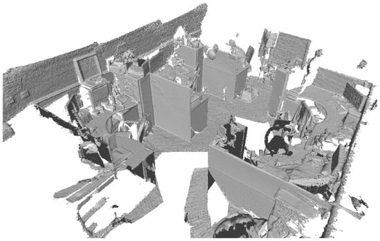 - Newcombe, R.A.; Izadi, S.; Hilliges, O.; Molyneaux, D.; Kim, D.; Davison, A.J.; Kohi, P.; Shotton, J.; Hodges, S.; Fitzgibbon, A. KinectFusion: Real-time dense surface mapping and tracking. In Proceedings of the 2011 10th IEEE International Symposium on Mixed and Augmented Reality (ISMAR), Basel, Switzerland, 26–29 October 2011; pp. 127–136. [Google Scholar]
